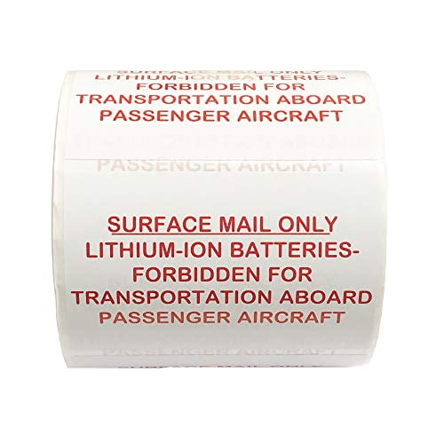 Lithium Ion Batteries Surface Mail Only Forbidden For Transport Aboard Passenger Aircraft Labels 2 X 3 Inch 500 Adhesive Stickers Per Roll Newegg Com